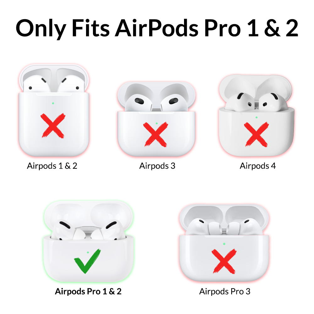 • Suited for Apple AirPod Pro case. Will NOT fit AirPod Generation 1 or 2 case! AirPods not included.