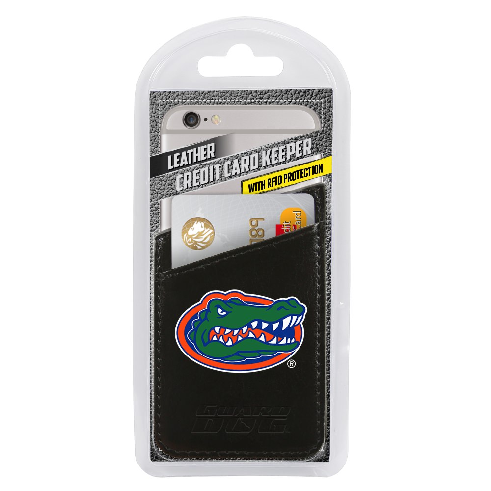 Protect your information in style with the Card Keeper Leather Phone Wallet with RFID Protection from Guard Dog! This genuine leather phone wallet features the Florida Gators logo and shields your RFID chipped cards from unwanted theft. The Card Keeper easily holds up to two cards and can be attached to the case of your choice or directly to the back of your phone. Leave your wallet at home - enjoy convenience and identity protection all in one accessory.